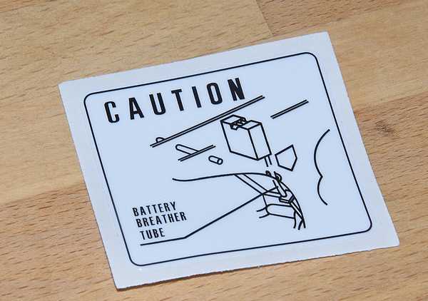 Avertissement de sécurité collé sur le support de feu arrière des Dax : Security label sticked on rear taillight bracket of following bikes :