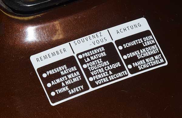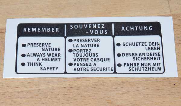 Dans un souci d’uniformisation, Honda a réalisé à partir de 1976 un sticker d’avertissement